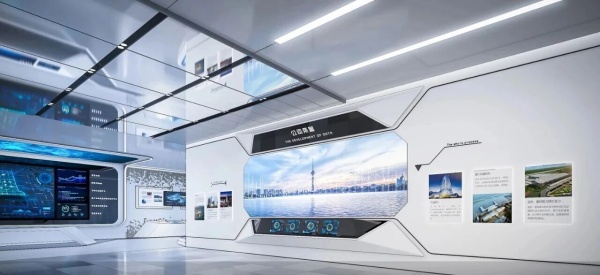展馆以“科技引领,智启未来”为设计理念,融合现代科技手段与艺术化表达,构建一个兼具科技感、未来感与互动性的展示空间,使参观者沉浸式体验日照港的科技活力与发展动能。