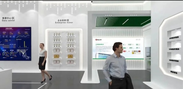 展厅入口,两面LED屏形成一面完整的大门,通过智能中控ipad控制门的开关,播放中国华能集团形象宣传片,彰显华能集团的形象与实力。