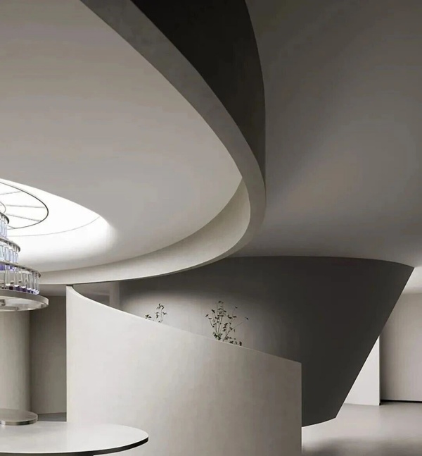 项目业主卡百利(Kabel)是一家专营艺术涂料的品牌。展厅的设计灵感源自艺术家的画笔,任意流动的墙面造型犹如画笔肆意涂抹出来的杰作,又仿佛是一个舞者在空间中旋转的动作轨迹,每一道曲线都是一次创作的瞬间,勾勒出了艺术家无穷的想象和创造力。